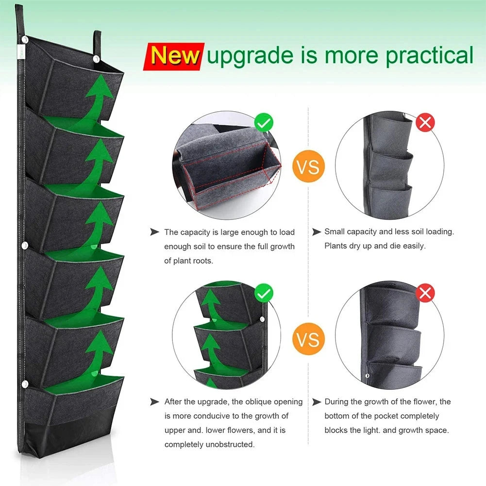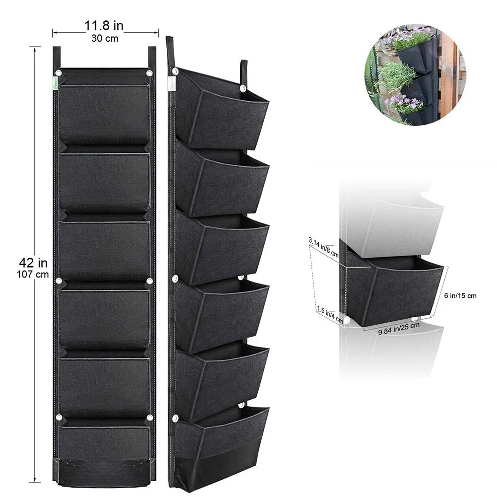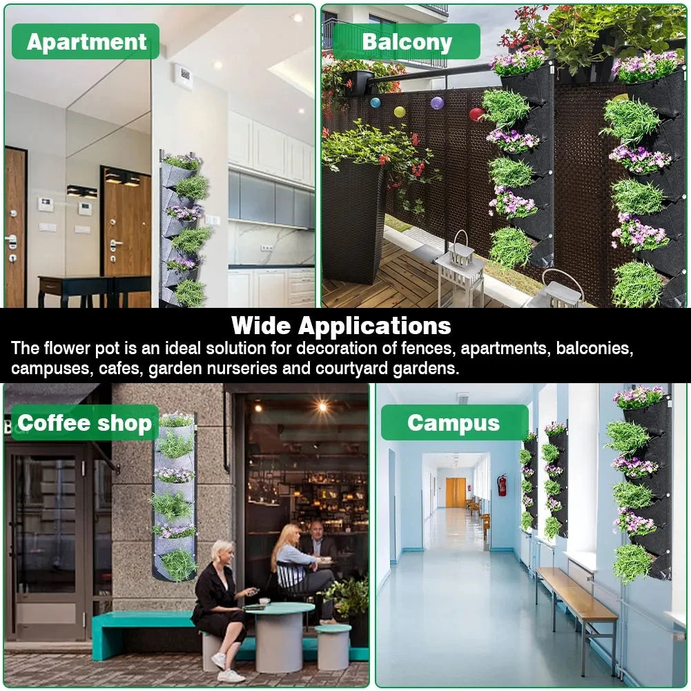 Breng je muur of balkon tot leven met deze hangende verticale plantenzak met 6 vakken. Perfect voor het kweken van bloemen, kruiden, groenten of aardbeien, zowel binnen als buiten.