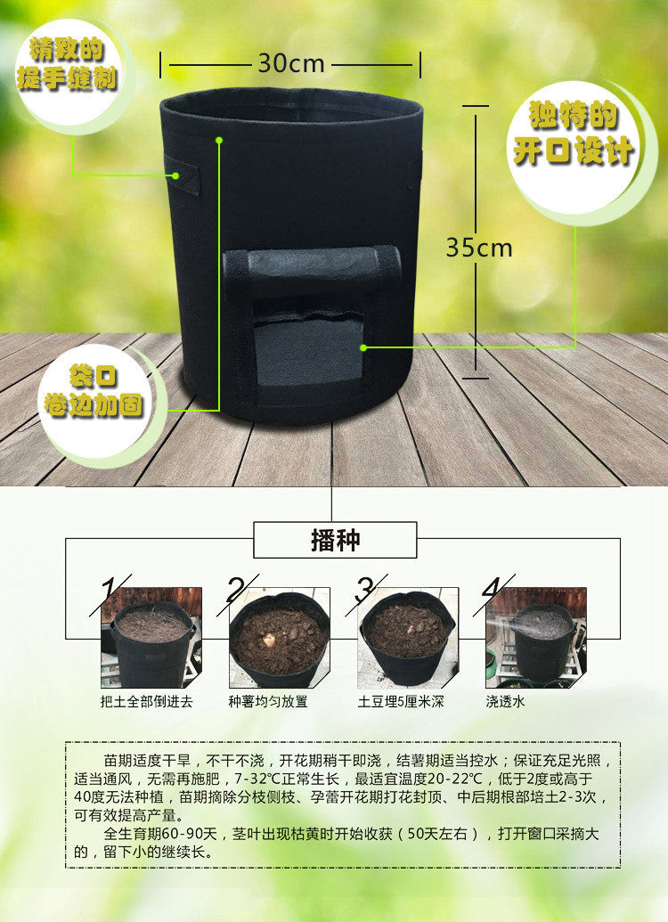 De plantenzak kan direct gevuld worden met aarde en zaden β ideaal voor in de tuin, kas, serre of op het balkon. Dankzij het ademende ontwerp blijven de wortels gezond, groeien planten sneller en voorkom je wortelrot.