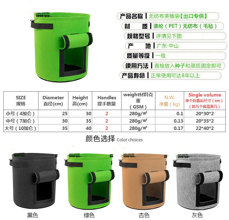 Deze hoogwaardige non-woven kweekzak is perfect voor het kweken van groenten, kruiden, bloemen of aardappelen. Gemaakt van sterk polyester (PET) vilt, biedt de grow bag uitstekende luchtcirculatie, drainage en duurzaamheid.
