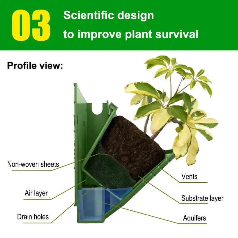 Dankzij het moderne verticale ontwerp is deze pot ideaal voor balkons, keukens en woonkamers. De duurzame materialen zorgen voor een lange levensduur, terwijl het slimme watermanagementsysteem zorgt voor optimale groeiomstandigheden.
